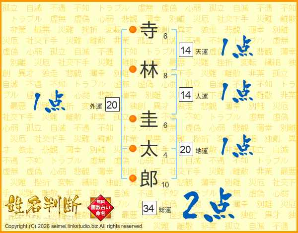 寺林圭太郎さんの総運は34画の2点!