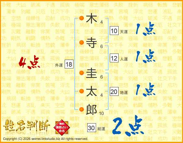 木寺圭太郎さんの総運は30画の2点!