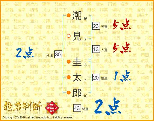 潮見圭太郎さんの総運は43画の2点!