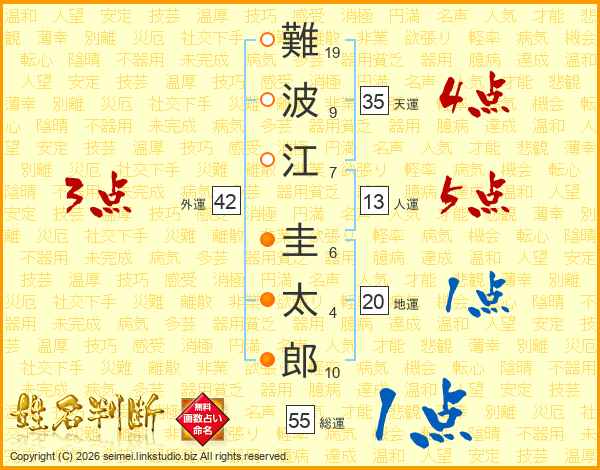 難波江圭太郎さんの天運は35画の4点!