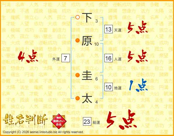 下原圭太さんの天運は13画の5点!