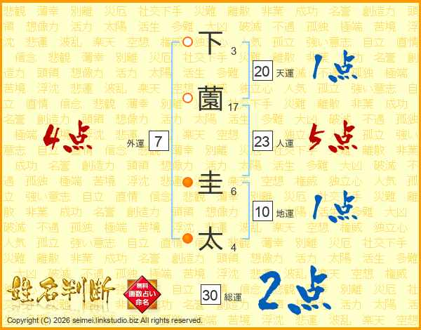 下薗圭太さんの人運は23画の5点!