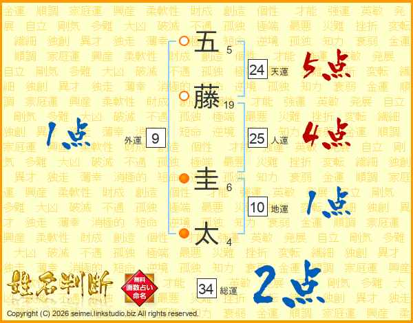 五藤圭太さんの天運は24画の5点!