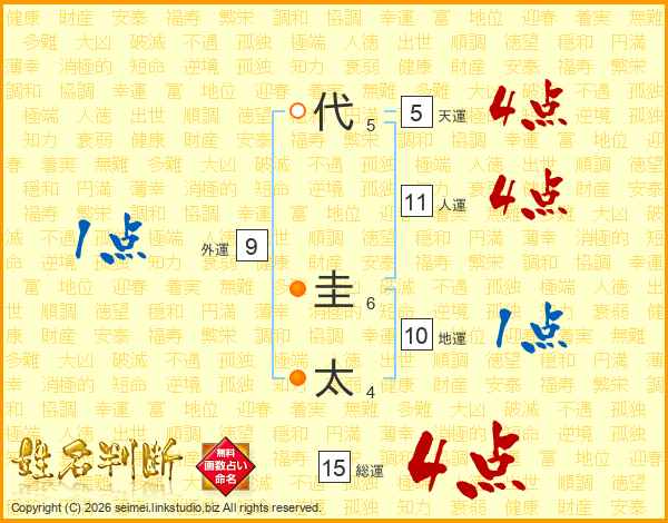 代圭太さんの総運は15画の4点!