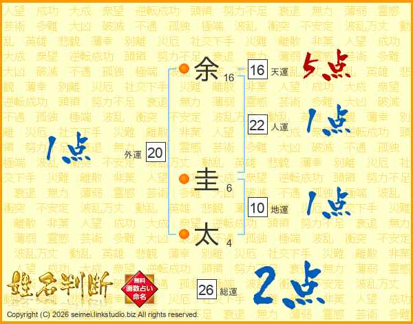 余圭太さんの総運は26画の2点!