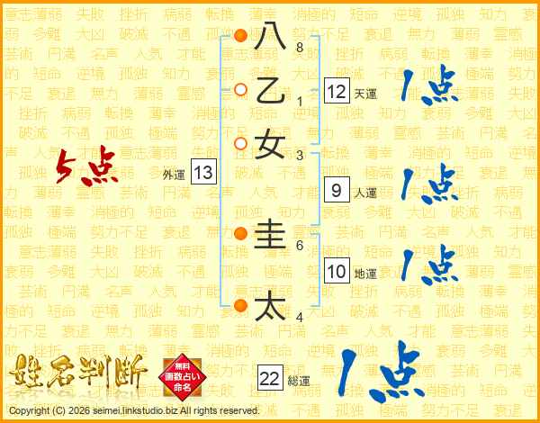 八乙女圭太さんの外運は13画の5点!
