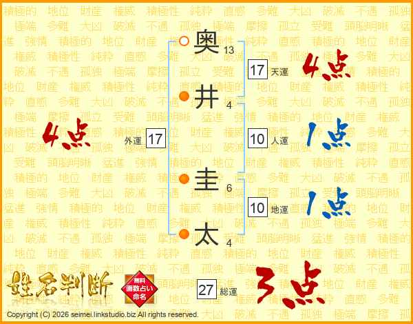 奥井圭太さんの天運は17画の4点!