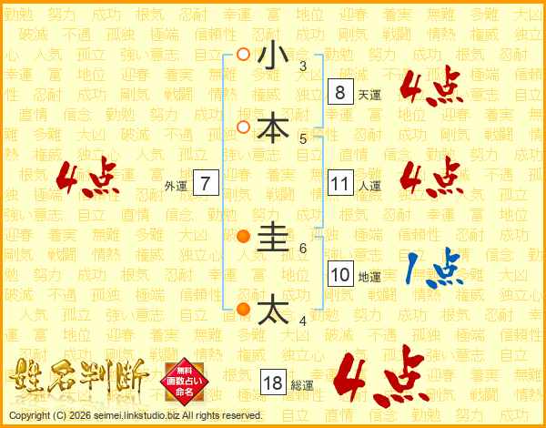 小本圭太さんの総運は18画の4点!
