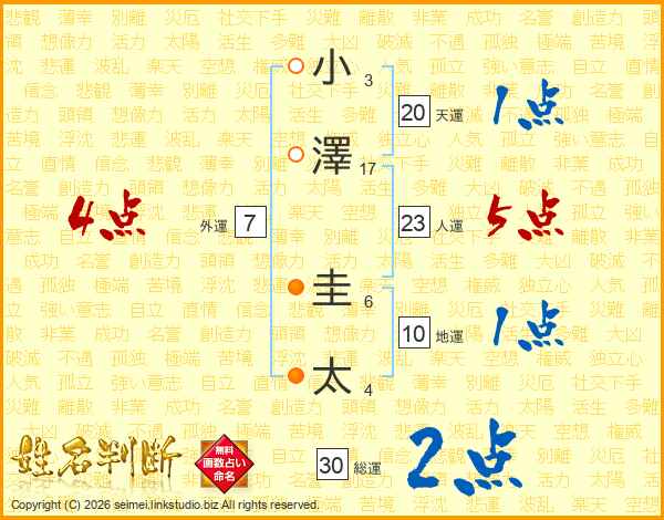 小澤圭太さんの総運は30画の2点!