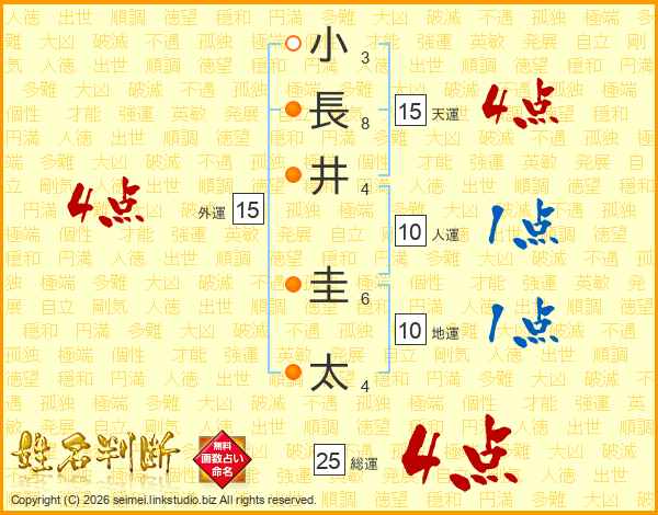 小長井圭太さんの天運は15画の4点!