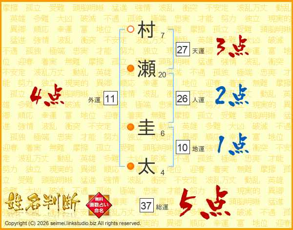 村瀬圭太さんの総運は37画の5点!