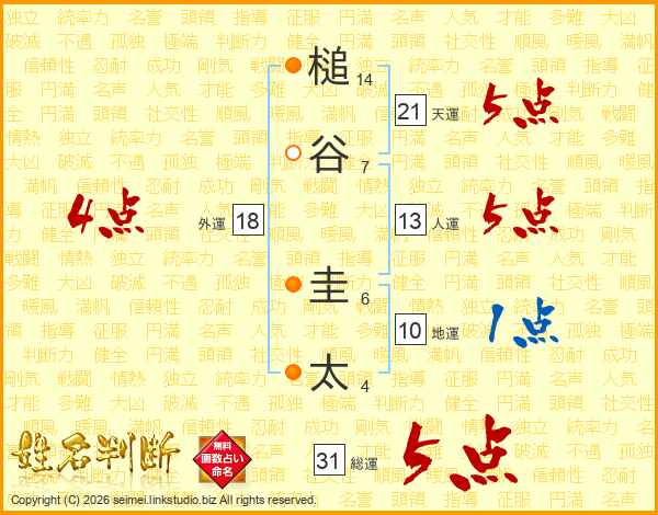 槌(14画)谷(7画) 圭(6画)太(4画)