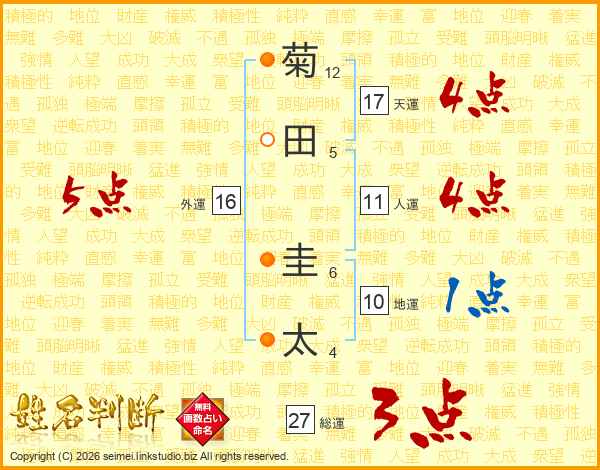 菊(12画)田(5画) 圭(6画)太(4画)
