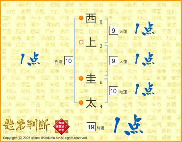 西(6画)上(3画) 圭(6画)太(4画)