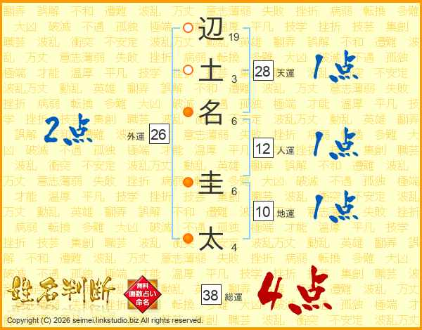 辺(19画)土(3画)名(6画) 圭(6画)太(4画)