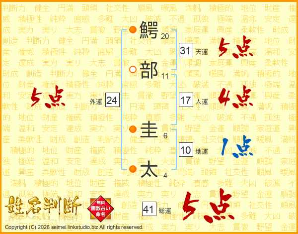 鰐部圭太さんの総運は41画の5点!