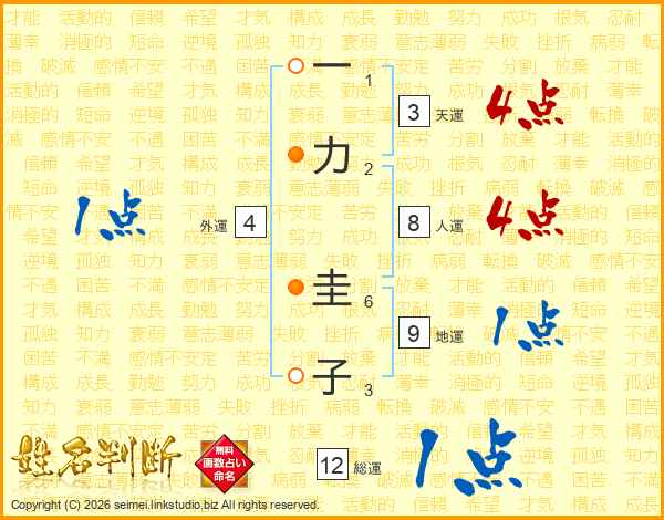 一力圭子さんの総運は12画の1点!