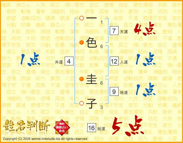 一色圭子さんの総運は16画の5点!