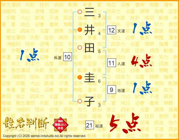 三井田圭子さんの総運は21画の5点!