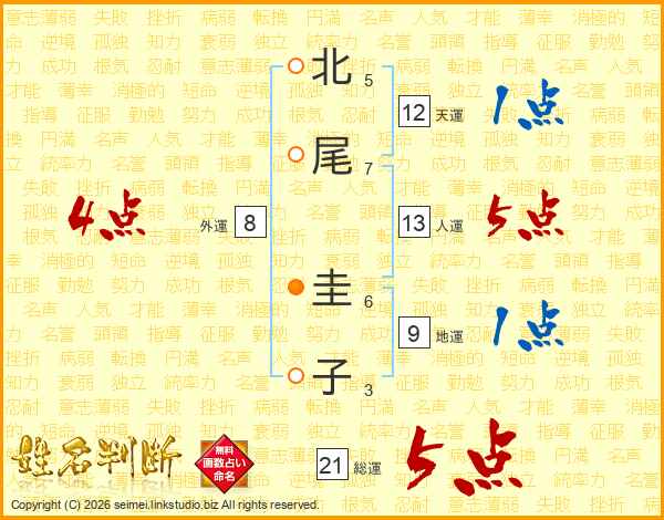 北尾圭子さんの総運は21画の5点!