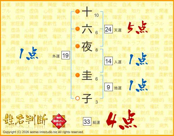 十六夜圭子さんの総運は33画の4点!