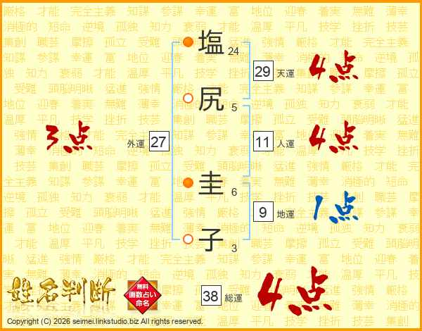 塩(24画)尻(5画) 圭(6画)子(3画)
