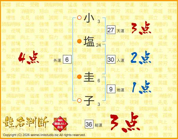 小(3画)塩(24画) 圭(6画)子(3画)