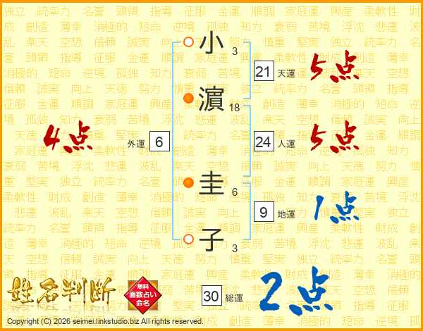 小濵圭子さんの総運は30画の2点!