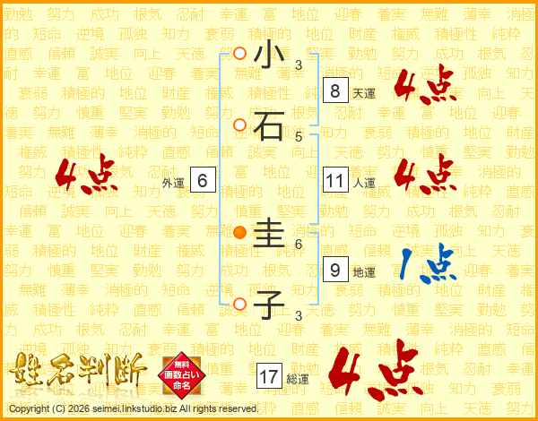 小(3画)石(5画) 圭(6画)子(3画)