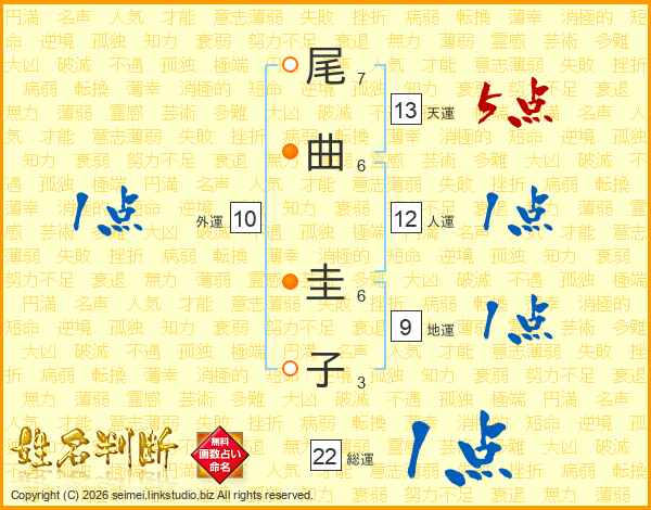 尾曲圭子さんの天運は13画の5点!