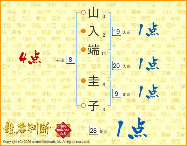 山入端圭子さんの総運は28画の1点!
