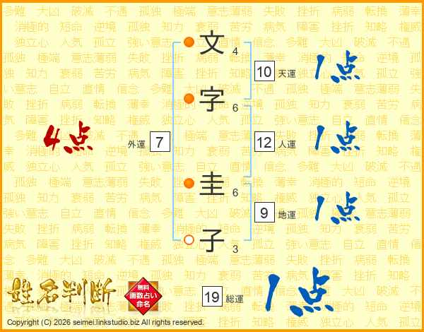文(4画)字(6画) 圭(6画)子(3画)