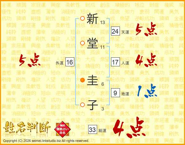 新堂圭子さんの総運は33画の4点!