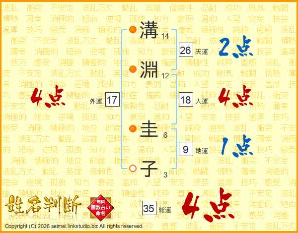 溝(14画)淵(12画) 圭(6画)子(3画)