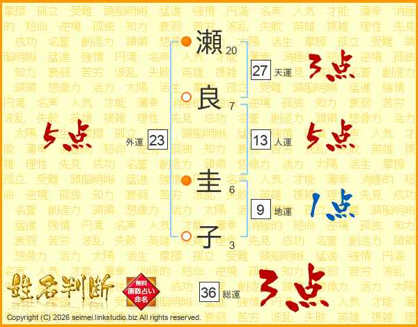 瀬良圭子さんの総運は36画の3点!