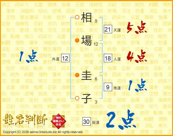 相場圭子さんの総運は30画の2点!