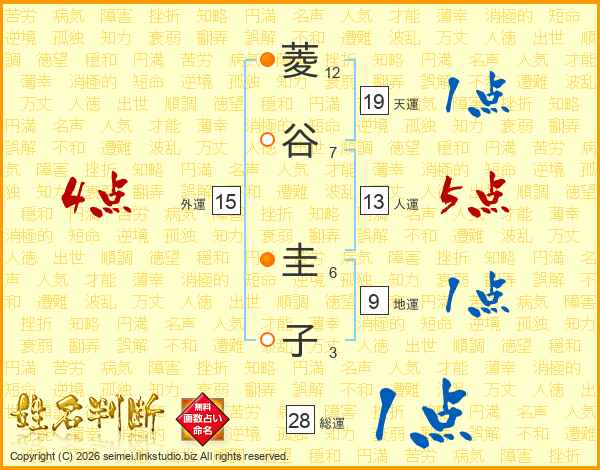 菱(12画)谷(7画) 圭(6画)子(3画)