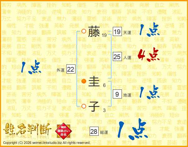 藤(19画) 圭(6画)子(3画)