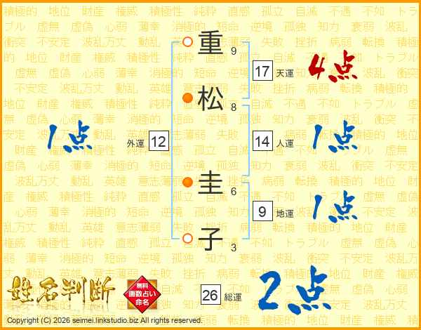 重松圭子さんの総運は26画の2点!