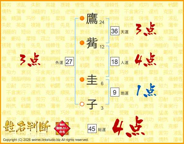 鷹(24画)觜(12画) 圭(6画)子(3画)