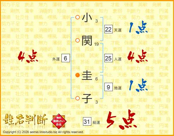 小関圭子さんの総運は31画の5点!