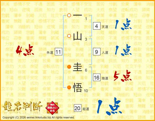 一山圭悟さんの天運は4画の1点!