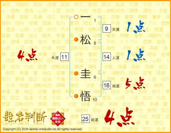 一松圭悟さんの人運は14画の1点!