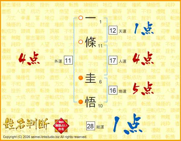 一條圭悟さんの総運は28画の1点!
