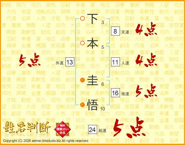 下本圭悟さんの総運は24画の5点!