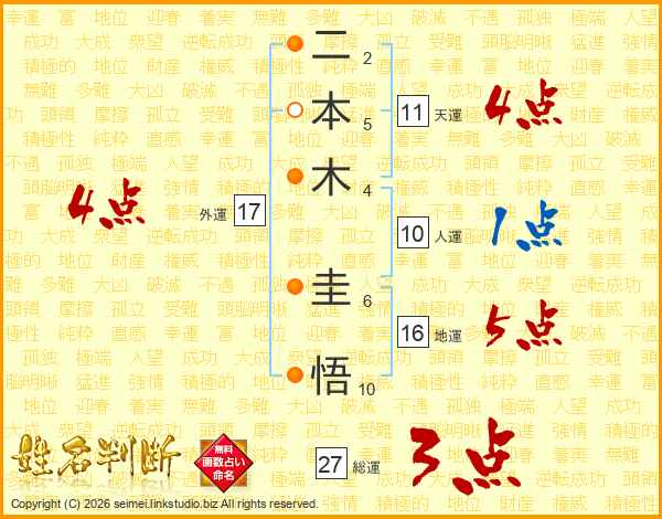 二本木圭悟さんの天運は11画の4点!