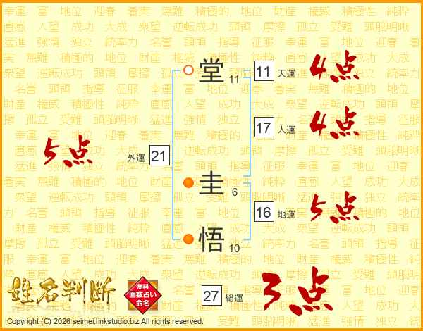堂圭悟さんの天運は11画の4点!