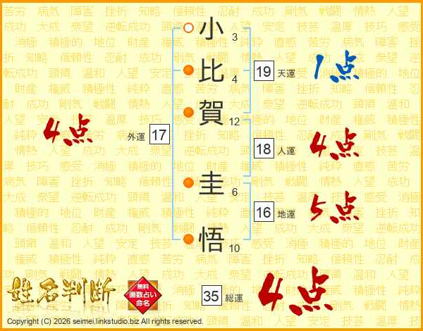 小比賀圭悟さんの総運は35画の4点!