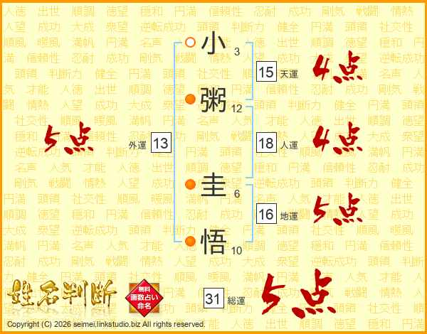 小粥圭悟さんの総運は31画の5点!