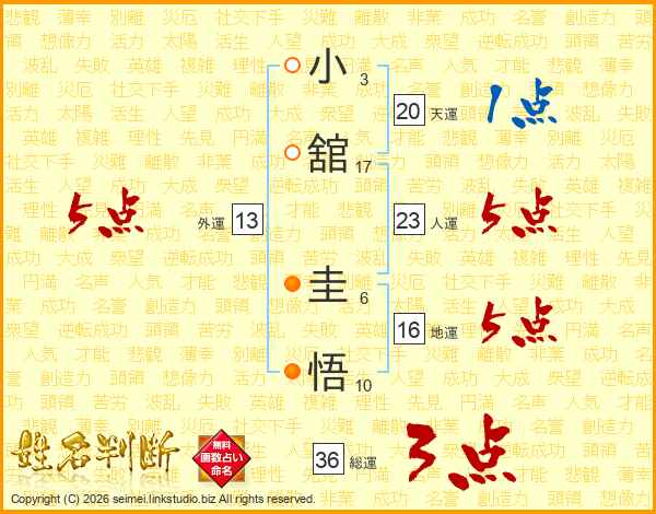 小(3画)舘(17画) 圭(6画)悟(10画)